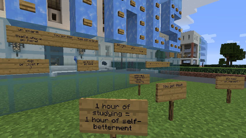 virtual campus to reunite with classmates and professors in the Minecraft Virtual World.